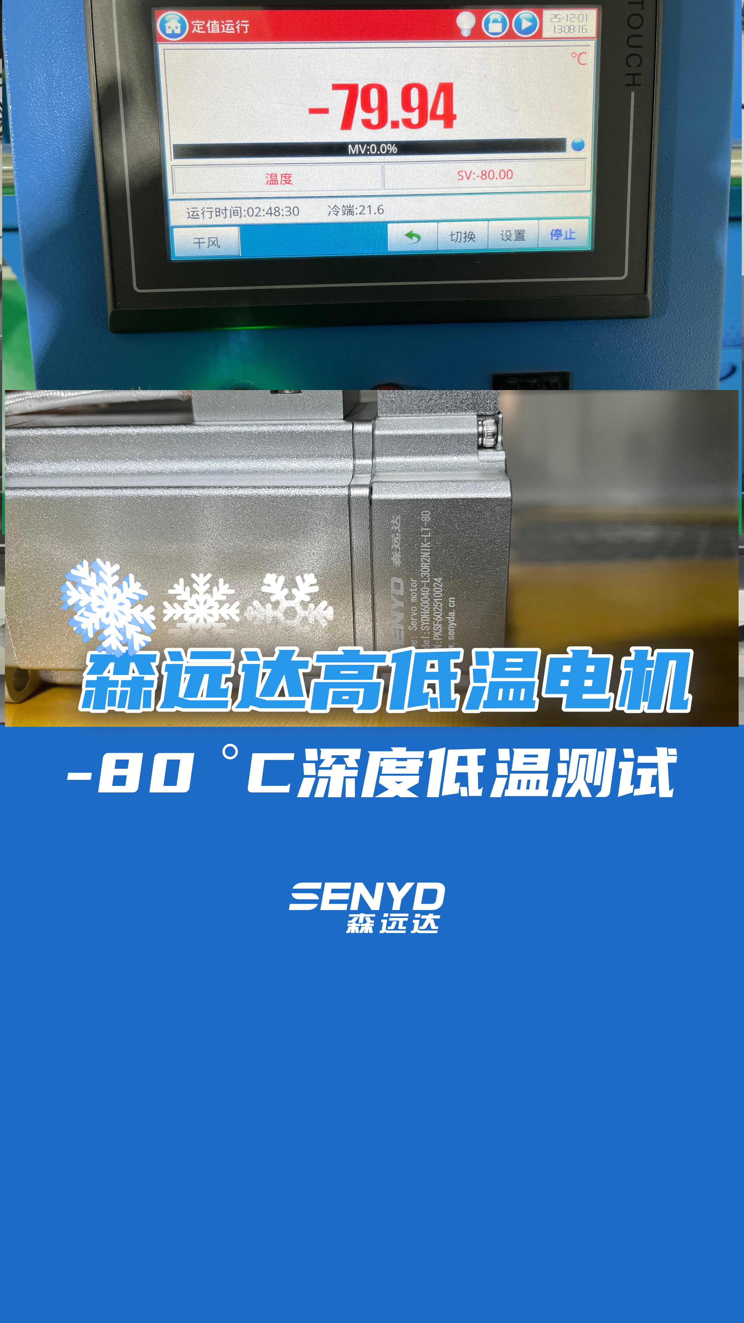 -80°C是什么概念?比北极更冷!冰川级环境测试现场直击。森远达高低温伺服电机在-80°C极寒实验室✅持续运转2小时✅稳定保持3000转✅性能曲线完美如初