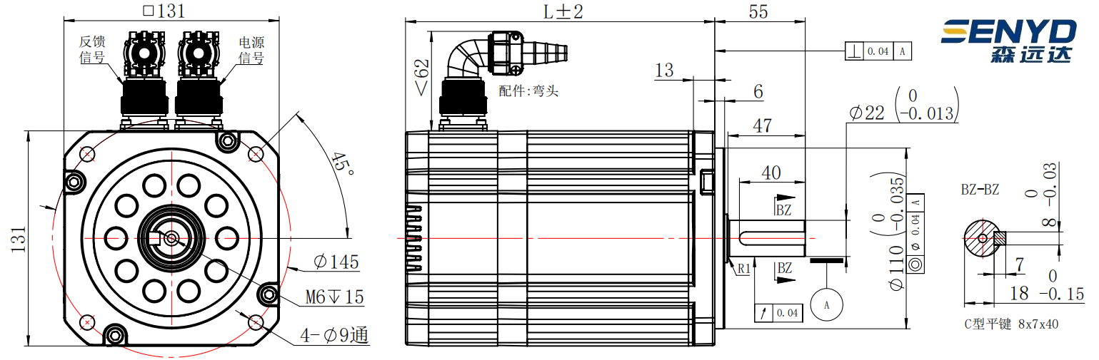 | 型号 | 电机长度L(无制动器) | 电机长度L(带制动器) |