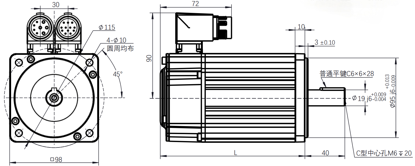 | 型号 | 电机长度L(无制动器) | 电机长度L(带制动器) |