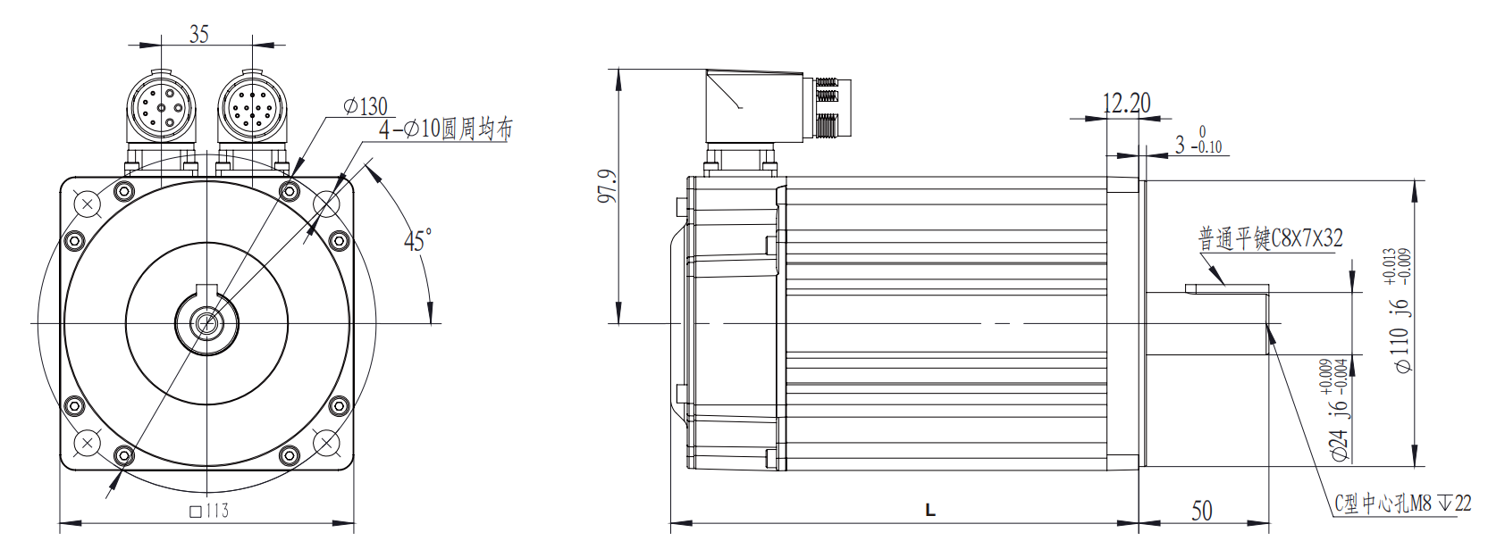 | 型号 | 电机长度L(无制动器) | 电机长度L(带制动器) |