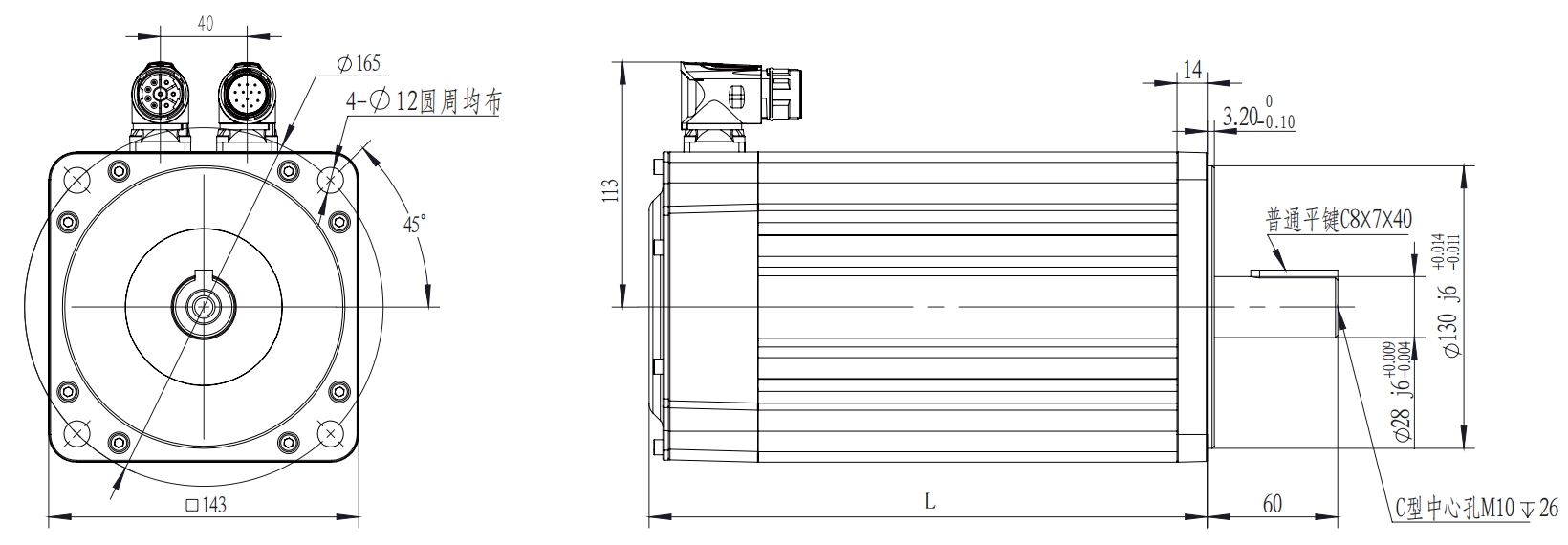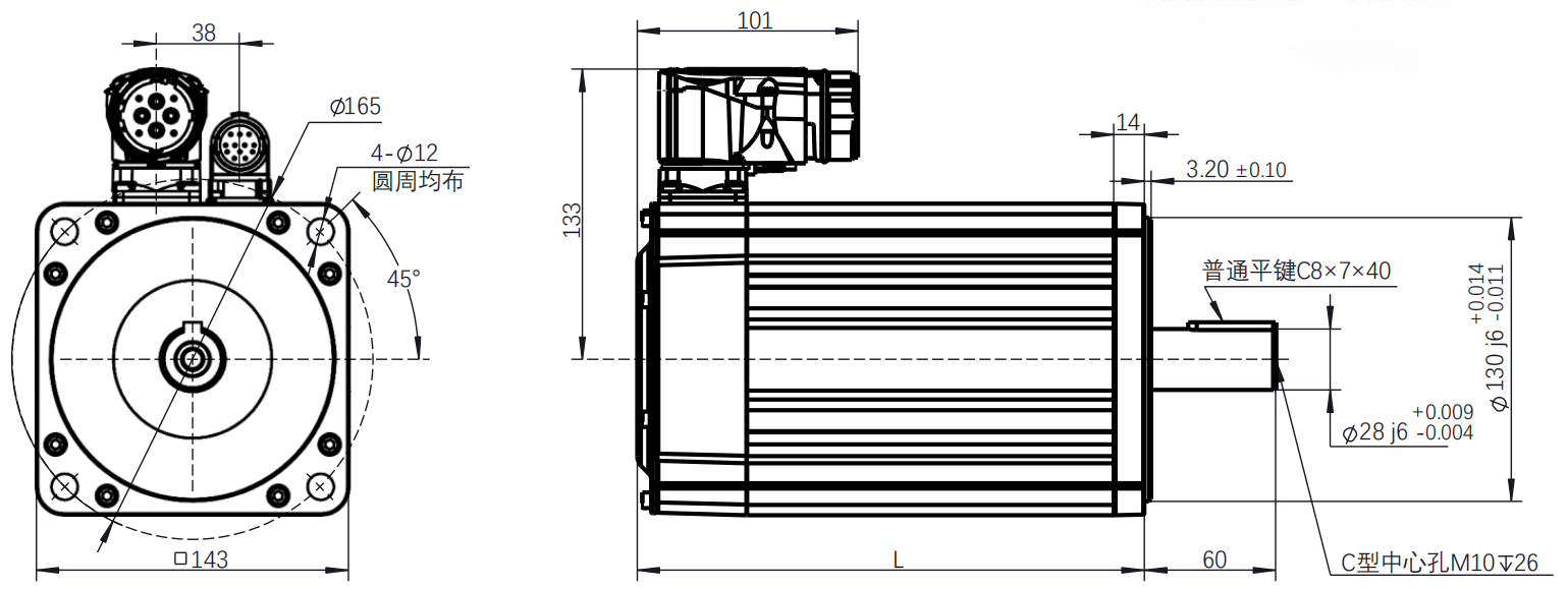 | 型号 | 电机长度L(无制动器) | 电机长度L(带制动器) |