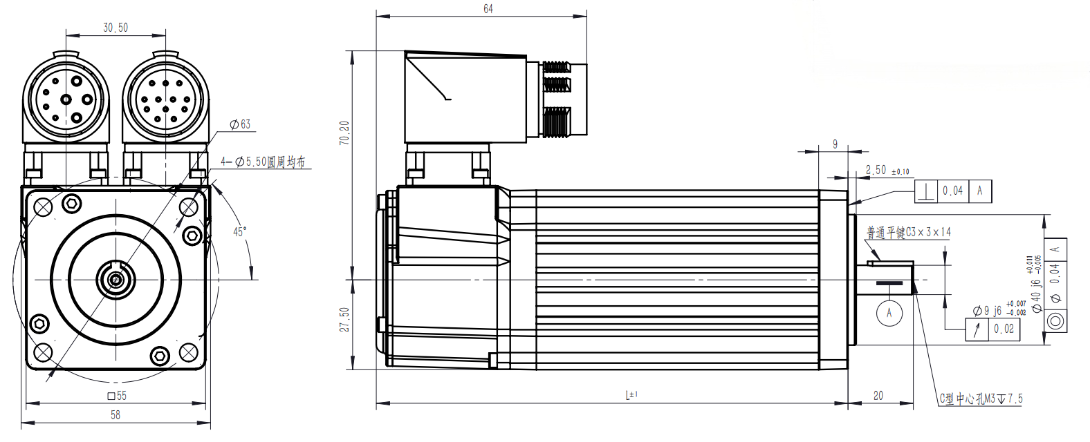 SYD高低温伺服电机55系列尺寸图